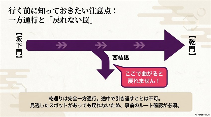 魅力をたっぷりお伝えしましたが、ここからは事前に知っておかないと後悔するポイントをお話しします。せっかくの乾通り体験を台無しにしないために、ぜひ目を通しておいてください。