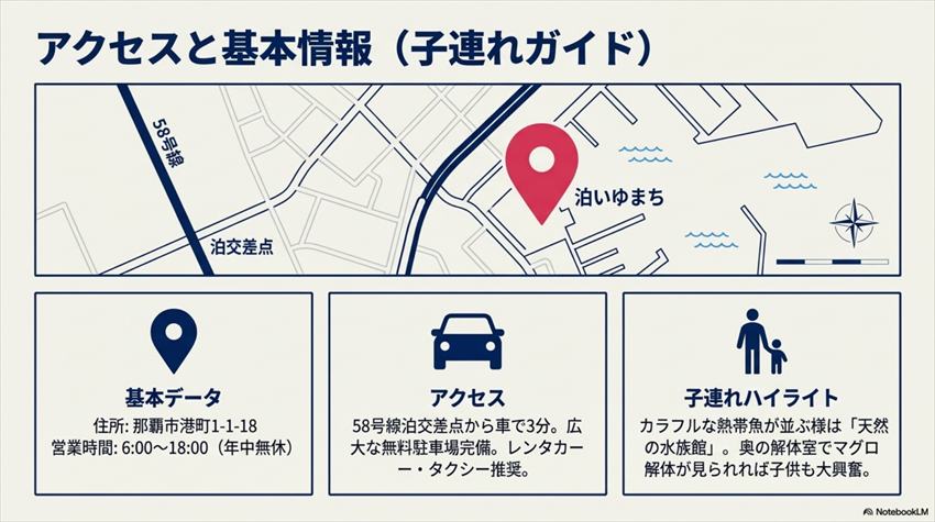 楽しめます。泊いゆまちは屋根付きの施設なので、雨でも問題なく買い物・食事ができます。なはまぐろ市場の屋外イートインは雨だと使いにくいですが、メインの施設内は天候に左右されません。