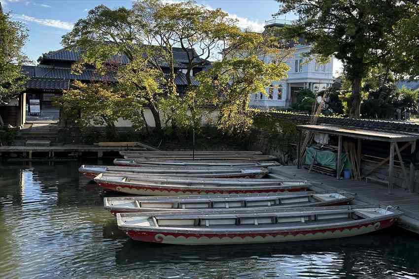 西鉄柳川駅周辺の乗船場から出発。船頭さんのガイドを楽しみながら沖端エリアへ。平日は13時台、土日は14時台の乗船がおすすめです。