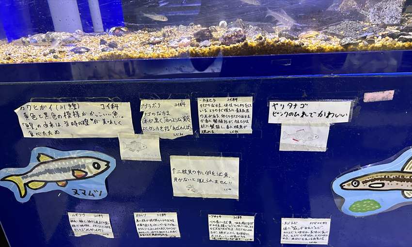 館内の水槽には手書きのキャプションが多くて、「あ、ここは個人が丁寧に作った場所なんだな」という空気感が伝わってきます。大手水族館のような洗練されたデザインではないけれど、完成度より愛情。それがこの施設の味なんですよね。